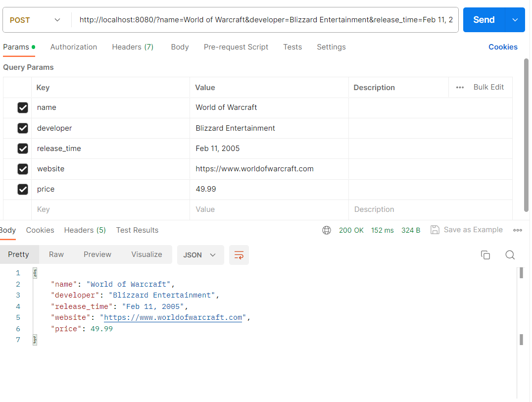 Game game = gameService.create(name, developer, releaseTime, website, price);
