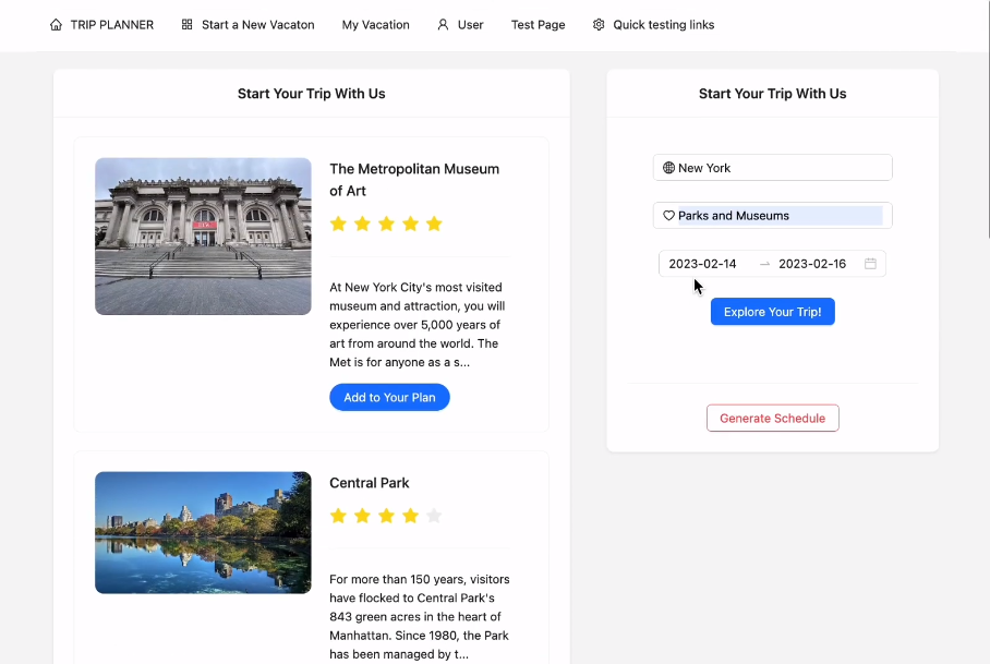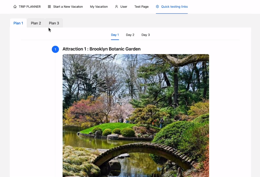 - Once got the response from ChatGPT, extract String from the response, and query TripAdvisor API for site details, and return site with site detail to the frontend.